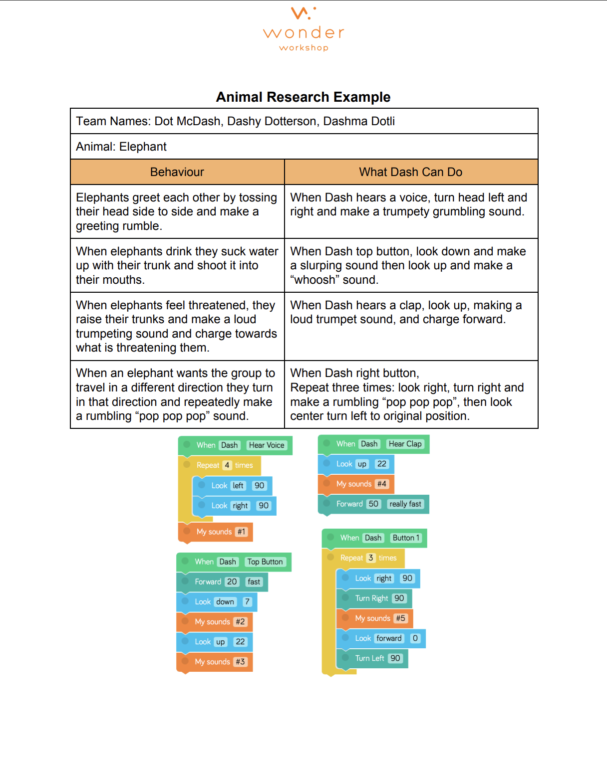 To help students understand how real-world behaviors translate into programming, the lesson includes an elephant example.